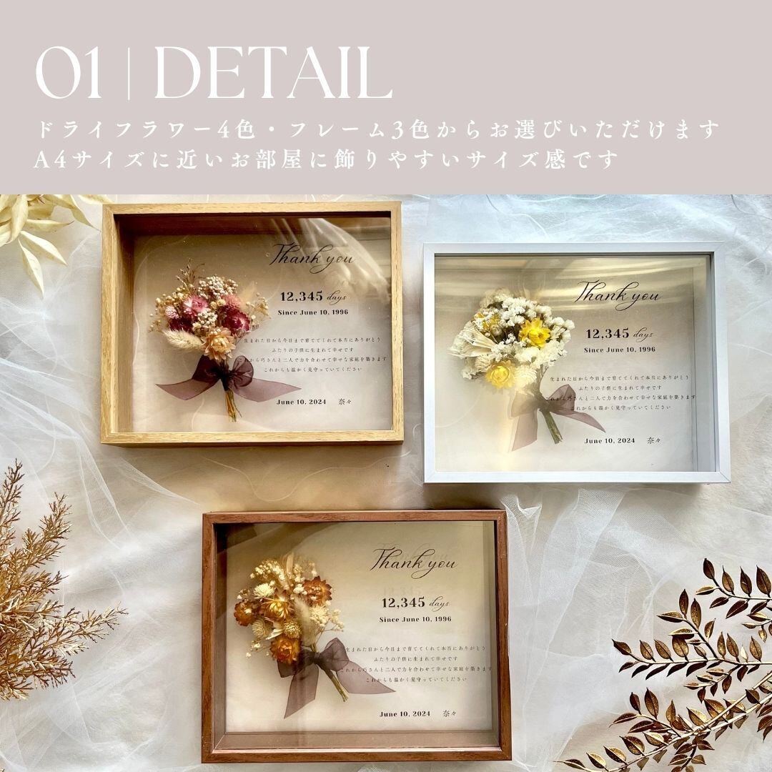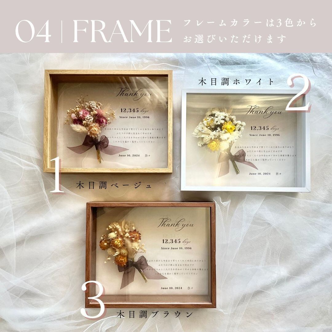 セミオーダー式でドライフラワーやフレームのカラーはお選びいただけます