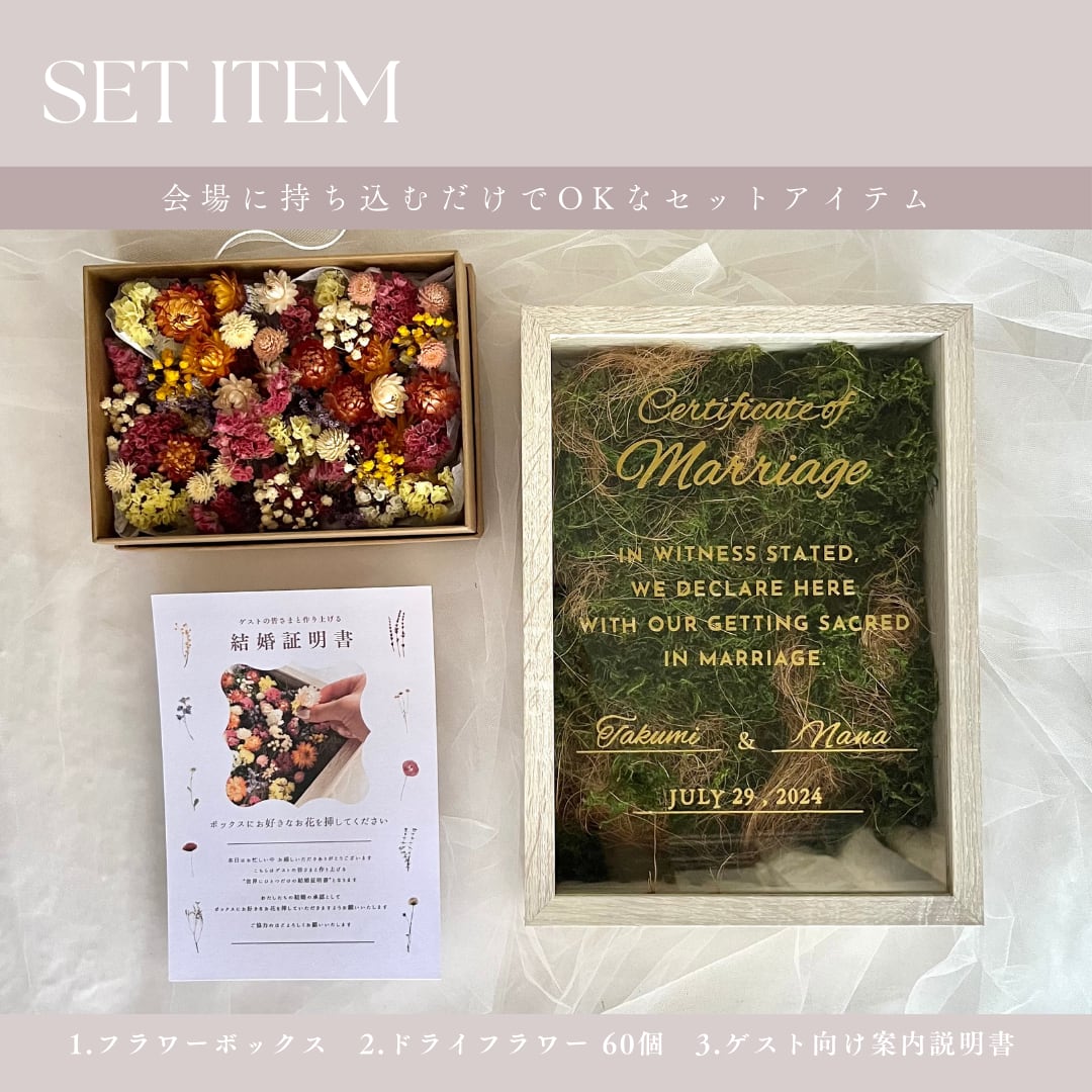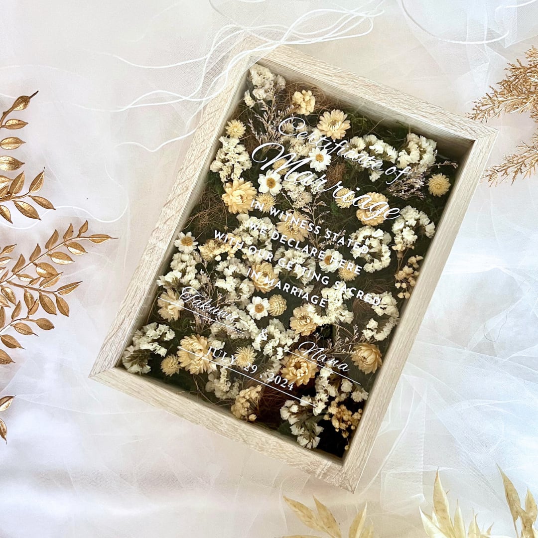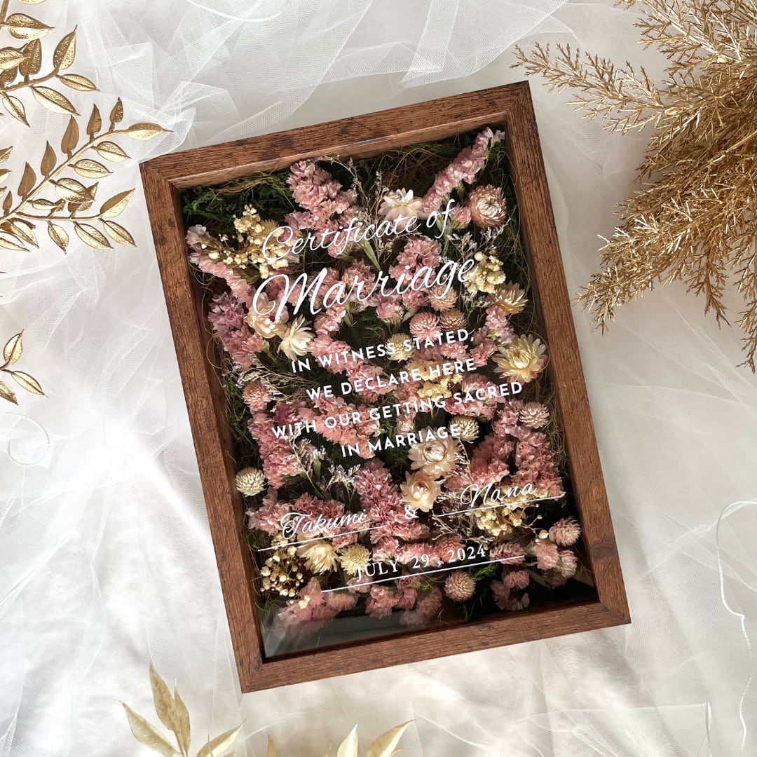 準備なしの簡単設置・コスパ◎なフラワーボックスの結婚証明書です